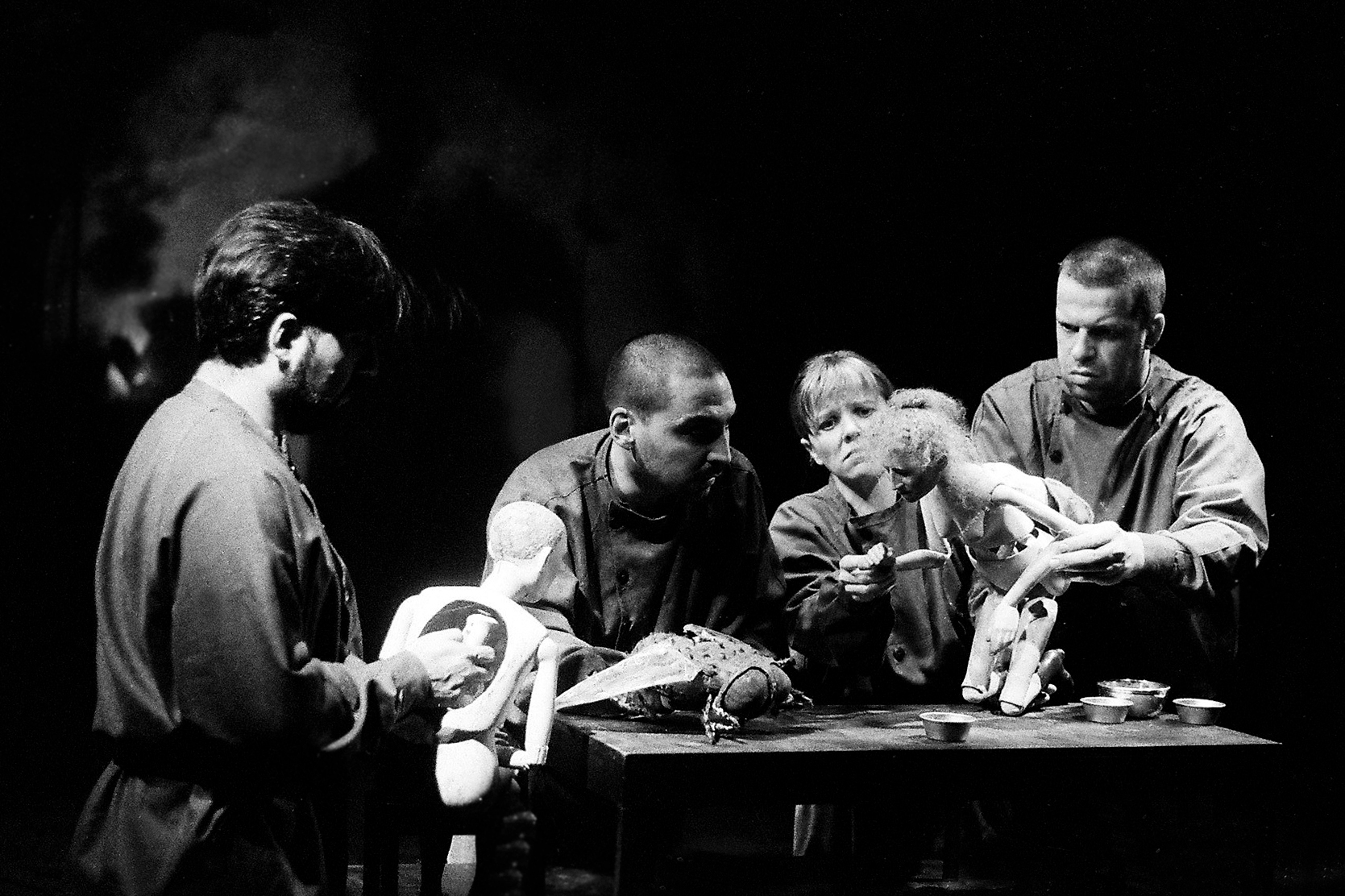 The group El Periférico de Objetos (1990-2009) revolutionised the Buenos Aires experimental theatre scene over the course of two decades, working under the direction of Ana Alvarado, Emilio García Wehbi and Daniel Veronese, with the participation of Román Lamas. Though they initially began to work together at the Grupo de Titiriteros [Puppeteers’ Group] of the Teatro San Martín, they began to imagine new possibilities for the traditional puppet show. In the wake of the impact made by artists such as Tadeusz Kantor, Pina Bausch and Dominique Houdart, the group staged their first show, Ubú Rey [Ubu the King], at the Parakultural in 1990, marking the beginning of a radical theatrical treatise about the body, objects and memory.
