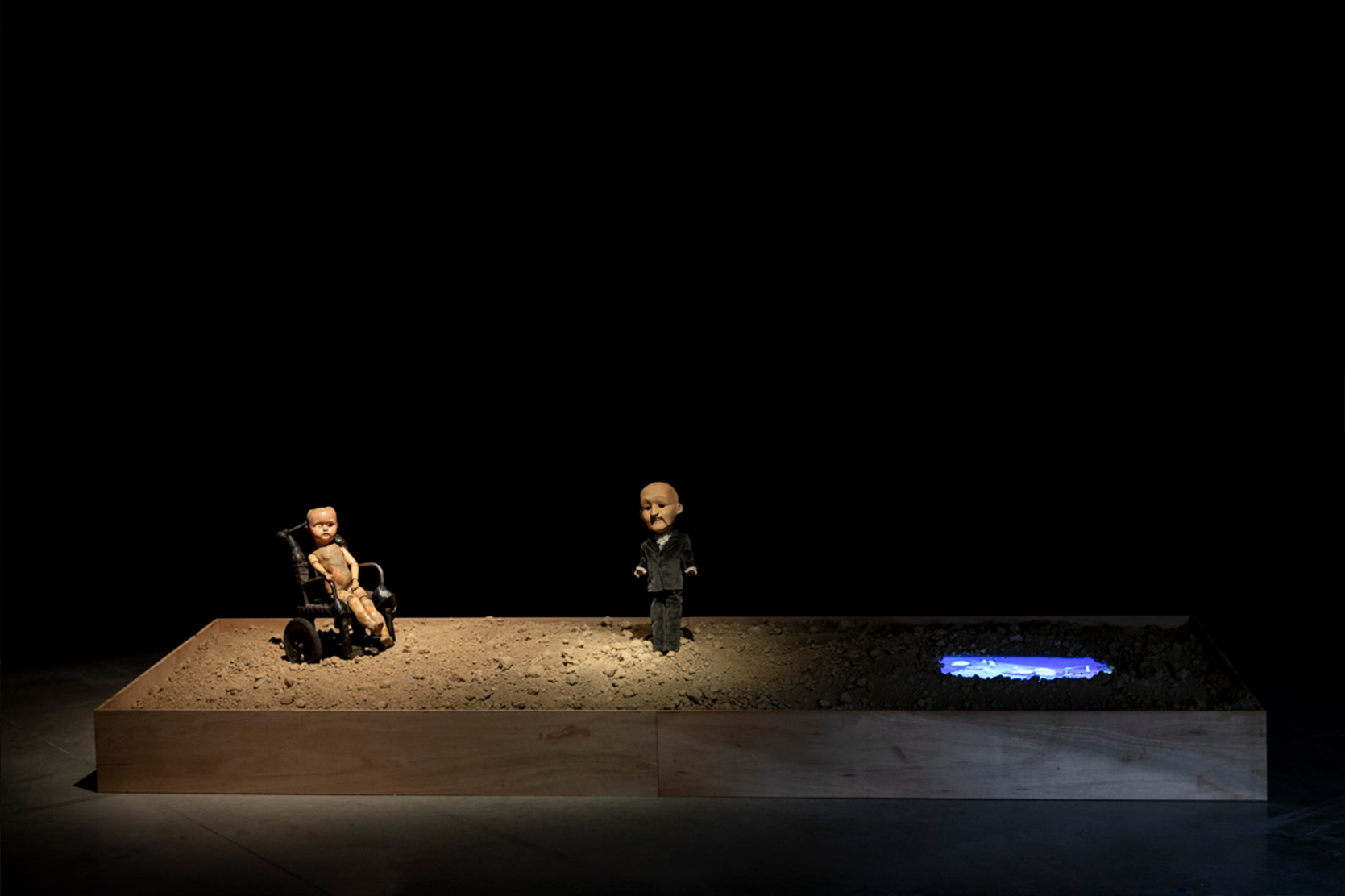 The proposed circuit through the exhibition reflects the evolution of the language the Periferícos explored over the years: from the puppet theatre of their early shows to their complete takeover of the stage in Máquina Hamlet [Hamletmachine], from the monumentality of Monteverdi Método Bélico [Monteverdi Warfare Method] to the condensed poetry of Manifiesto de niños [Children’s Manifesto]. The exhibition brings these objects to life once again, and, as if they were miniature time machines, transports the disruptive legacy of this group that transformed Argentina’s cultural and theatrical scene into the present.