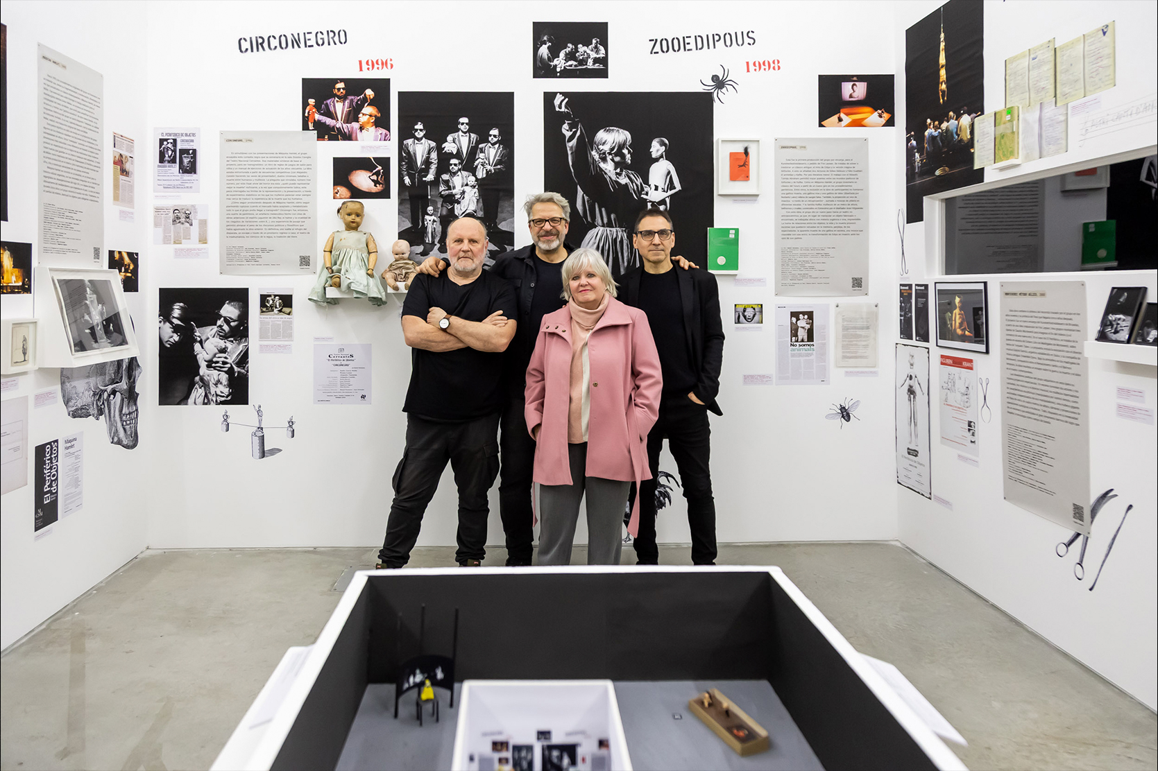 El recorrido que les proponemos acompaña los desplazamientos del lenguaje periférico a lo largo de los años: del retablo de títeres de sus primeros espectáculos a la toma total del escenario en Máquina Hamlet, de la monumentalidad de Monteverdi Método Bélico a la condensación poética de Manifiesto de niños. Esta muestra es el retorno vivo de los objetos, que traen al presente, como si fueran pequeñas máquinas del tiempo, el legado rupturista de este grupo que transformó la escena cultural y teatral argentina.
