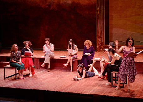 Almas ardientes narra un día en la vida de nueve mujeres. Un día como cualquier otro. Hasta que lo extraordinario irrumpe. Así. Con la violencia de lo inesperado. Almas ardientes es una especia de Bildungsroman negativo: nuestras mujeres descubren la existencia de lo otro; comprenden – por primera vez – que más allá de la protección de sus casas hay algo que, tal vez, sepa incluirlas. Almas ardientes es un sismo de dimensiones gigantes en el corazón de estas mujeres, un despertar, un viaje hacia el silencio y la conciencia y es también, claro, la felicidad de ver juntas sobre un escenario a estas nueve mujeres, desafiando la tormenta y pasándola bomba. Fuimos felices haciendo Almas ardientes – esperemos tener el poder del contagio.